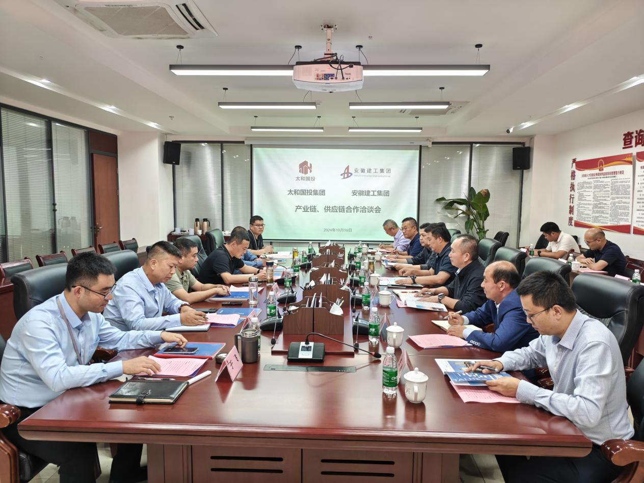 10月16日,,,公司党委副书记、总司理、阜阳区域链长李登祥,,,率安徽365英国上市路港、安徽365英国上市商贸、安徽365英国上市建材等成员单位赴太和县国有资产投资控股集团有限公司开展工业链、供应链相助洽谈会。。。