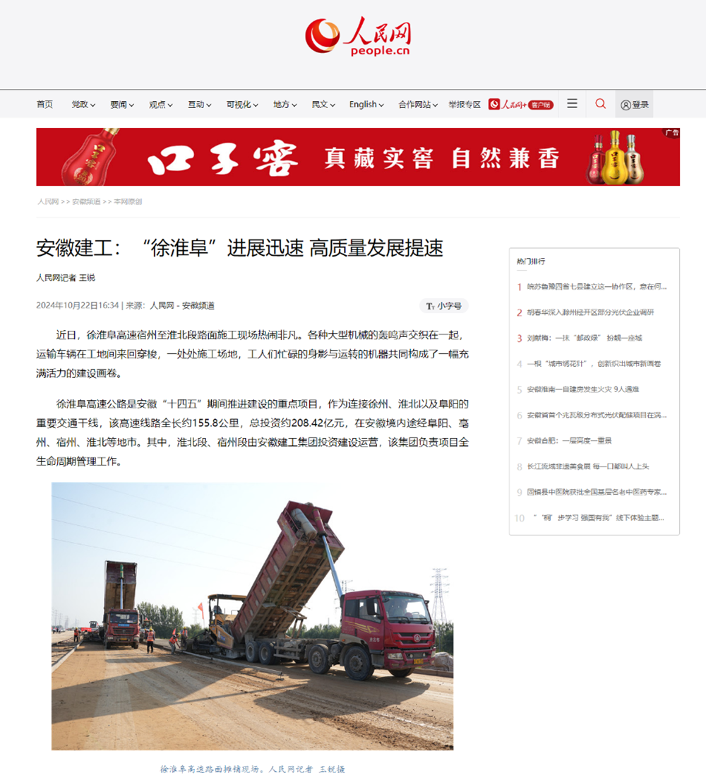 克日,,,,人民网安徽频道重点报道了安徽365英国上市投资建设的徐淮阜高速项目。。。。。。