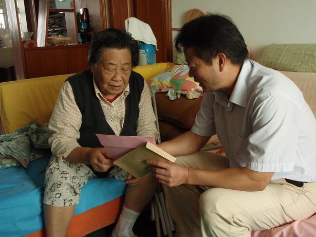 9月22、23日上午,,在开国60周年到来之际,,安徽建机公司党委书记王爱国同志率领工会、党工部认真人及离休支部事情职员探望、慰问离休老干部,,为他们送去省委组织部的慰问信和企业给予的600元慰问金。。。。。王书记与老干部们亲热攀谈,,叙说家常,,祝福他们晚年幸福、安康,,在举国上下配合迎接祖国60华诞的喜庆时刻,,老干部们深切感受了党组织的眷注与温暖。。。。。                                                     (党工部)