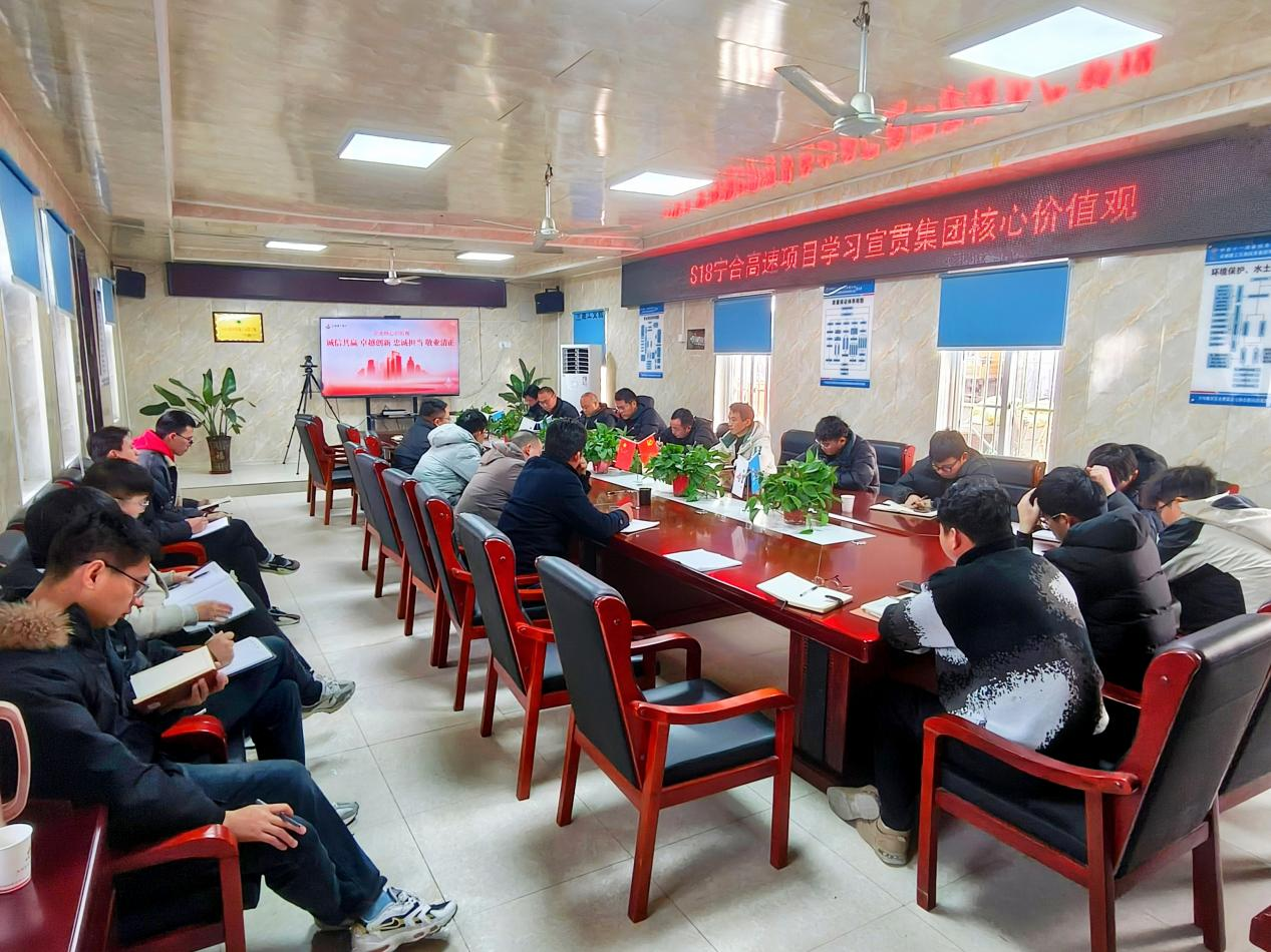 S18宁合高速项目召开专题聚会,,集中学习了集团下发的《关于开展365英国上市焦点价值观学习宣贯的通知》,,鲜明解读了“诚信共赢 卓越立异 忠诚继续 敬业清正”焦点价值观的深刻寄义。。。