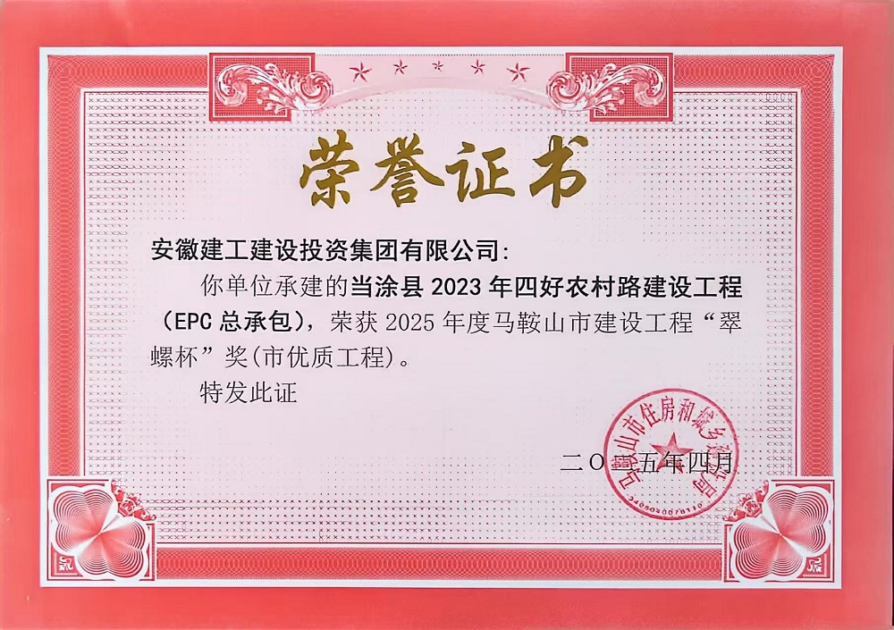 克日,,马鞍山市住房和城乡建设局宣布2025年度马鞍山市建设工程“翠螺杯”奖(市优质工程)获奖项目名单,,365英国上市建投集团二分公司承建确当涂县2023年“四好农村路”建设工程总承包(EPC)荣获该殊荣。。