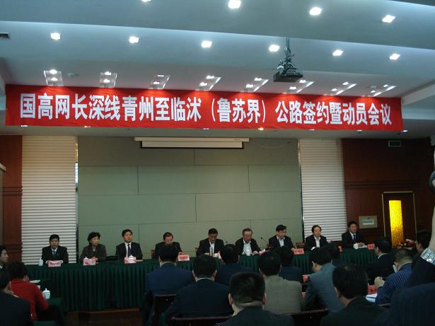 3月30日,, ,,,集团公司接到国家高速公路网长春至深圳线青州至临沭(鲁苏界)公路第二标段工程中标通知书 。。。4月10日集团公司董事长、总司理胡运成一行专程前往山东省青州市与山东省交通厅公路局签署了工程施工条约协议书 。。。该工程中标价2.46亿元,, ,,,工期32个月,, ,,,将于五月份正式开工 。。。