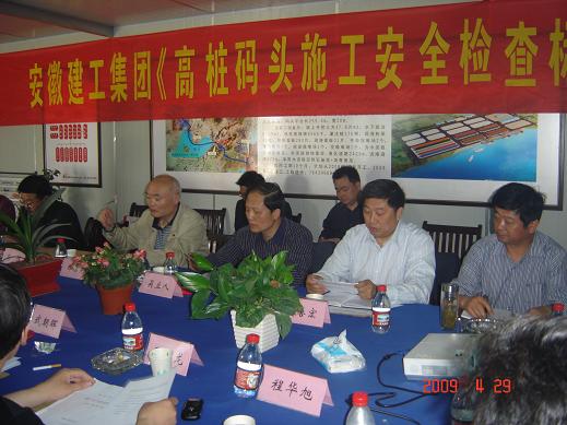 合肥港项目部司理向与会职员汇报了合肥港的概况、施工进度、树模工程实验情形等。。。。路港公司副总司理张琼对合肥港综合码头一期工程建设历程举行汇报。。。。郭道真先容了《高桩码头施工清静检查标准》起草情形,,,肯定了合肥港项目的治理水平和创365英国上市作。。。。