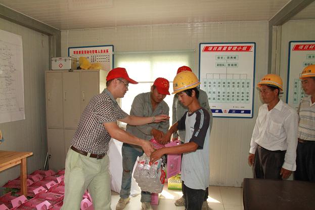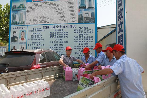 今年7月份以来,,,,,,受副热带高压影响,,,,,,我省天气晴热,,,,,,合肥地区一连高温。。。。为细密围绕高温时期事情重点,,,,,,起劲配合施工生产,,,,,,做好高温时期的清静生产事情,,,,,,三建公司团委在8月14日组织青年自愿者,,,,,,划分前往合肥市七中搬家工程、中国科学手艺大学研发试验楼工程、力高共和城倾城水乡西四期工程等三个项目部,,,,,,开展“1+1”自愿服务活动,,,,,,即以一线班组农民工为服务工具,,,,,,开展一次高温清静教育,,,,,,举行一次防暑慰问。。。。同时,,,,,,招呼所属团支部、直属项目部组织自愿者,,,,,,连系各单位、各项目部事情现实,,,,,,起劲开展“1+1”自愿服务活动。。。。