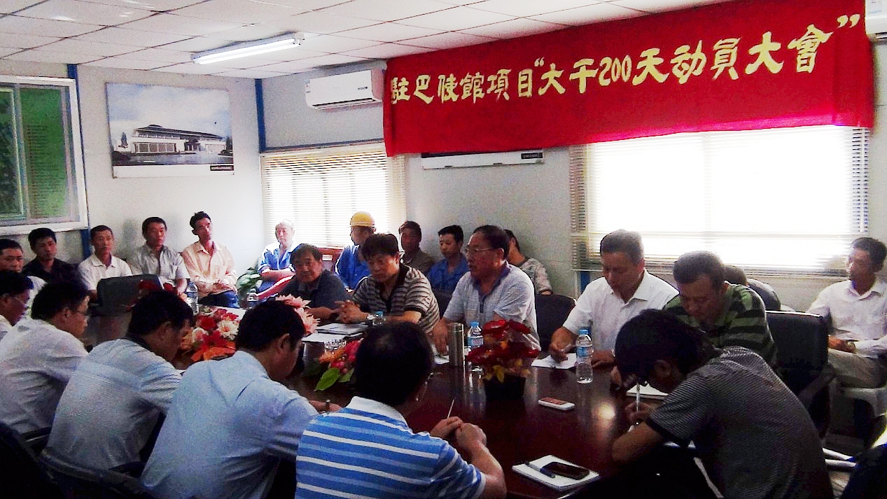 经由一周时间的调研和准备,,21日上午,,项目部组织召开“驻巴使馆项目大干200天发动大会”。。许总参会并代表集团公司董事长赵时运亲热慰问项目全体职工,,他要求项目从现在起周全进入抢工阶段,,要确保按条约工期履约;;;;;;强调参会职员要把聚会精神转抵达一线,,全体职工要坚决执行发动大会的要求;;;;;;同时将会从集团的层面给予项目支持。。从项目治理干部、一线职工到海内后勤包管组,,各人都纷纷亮相,,一定团结一致掀起大干、快干的新热潮。。