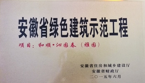 安徽水利六安温顺“沁园春”雅园项目荣获“安徽省绿色康健树模工程”称呼