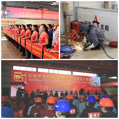 2015年10月14日,,,由安徽水利股份金属结构总厂承办的安徽省第九届“徽匠”修建手艺大赛在嘉和工业园准期举行,,,来自全省各地市21支代表队的近百名选手参赛。。。。。。蚌埠市副市长胡启望在开幕式上致辞,,,省住建厅、省总工会、蚌埠市住建委等相关单位认真亲临角逐现场。。。。。。