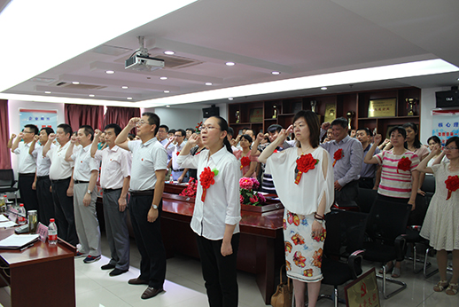 6月29日下昼,,,,,安徽装置公司党委开展“不忘入党初心,,,,,践行入党誓言”主题活动,,,,,全体党员站在庄重鲜艳的党旗下举起右拳,,,,,在领誓人的向导下,,,,,重温入党誓词。。。 。。。