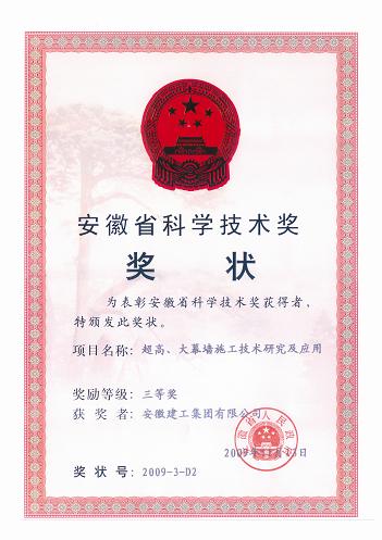 日前,,,,,安徽省人民政府宣布2009年度安徽省科学手艺奖励的决议,,,,,集团公司系统三个科研项目荣获“安徽省科学手艺奖”三等奖,,,,,划分是:“超高、大幕墙施工手艺研究及应用”(完成单位:安徽省第一修建工程公司、365英国上市有限公司)、 “60m直径无中心支承、有侧限网壳结构屋面水泥熟料库要害手艺应用”和“木质素磺酸盐改性剂的研究和应用”(完成单位:安徽省修建科学研究设计院)。。