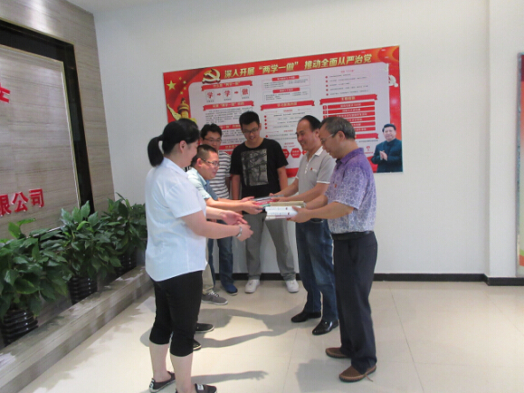 7月26日下昼,,,,,安建地产有限公司党总支书记、总司理杨斌与党群事情部相关同志一起,,,,,冒着高温驱车前往合肥同兴置业生长有限公司,,,,,为一线员工送去防暑降温物品和图书,,,,,标记着安建地产党总支开展的向下层一线员工“送清凉”、“送图书”活动正式启动。。。。。