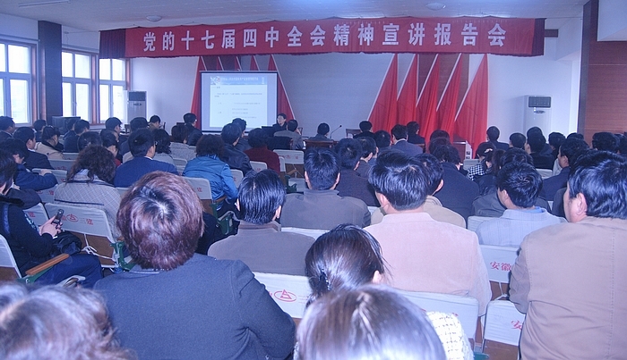 4月1日上午,,,省国资委党的十七届四中全会精神宣讲团副团长、组宣处调研员赵良耿带队来到365英国上市宣讲,,,宣讲团成员、淮南职业手艺学院思政部主任、副教授朱友强作了题为《认真学习十七届四中全会精神周全推进我省国有企业党365英国上市作》的专题报告。。集团公司向导,,,所属各单位向导班子成员、党群部分认真人,,,集团机关全体职工加入报告会。。报告会由集团公司党委事情部主任吴晓伍主持。。
